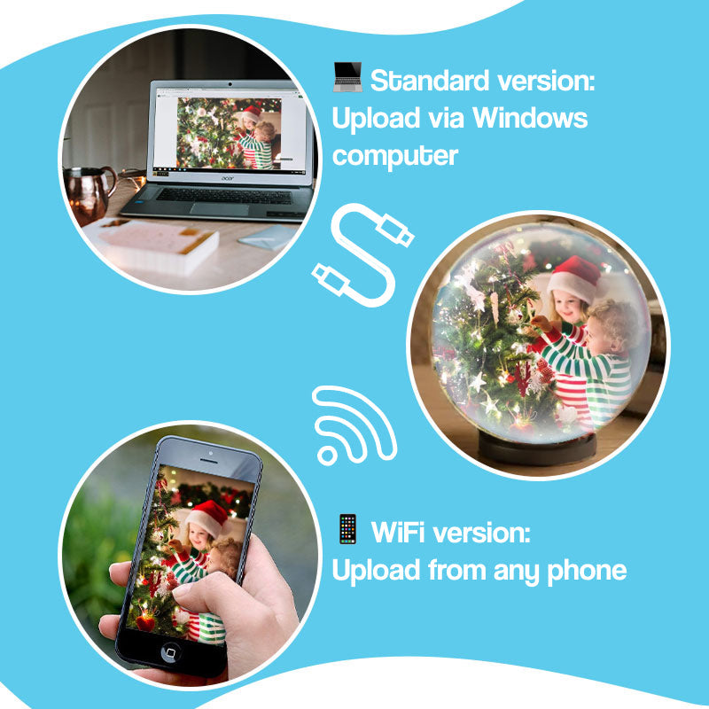 📱 Upload Your MemoriesWiFi version: Connect via app and upload directly from your phone. Standard version: Transfer via computer. Each video up to 5 minutes.