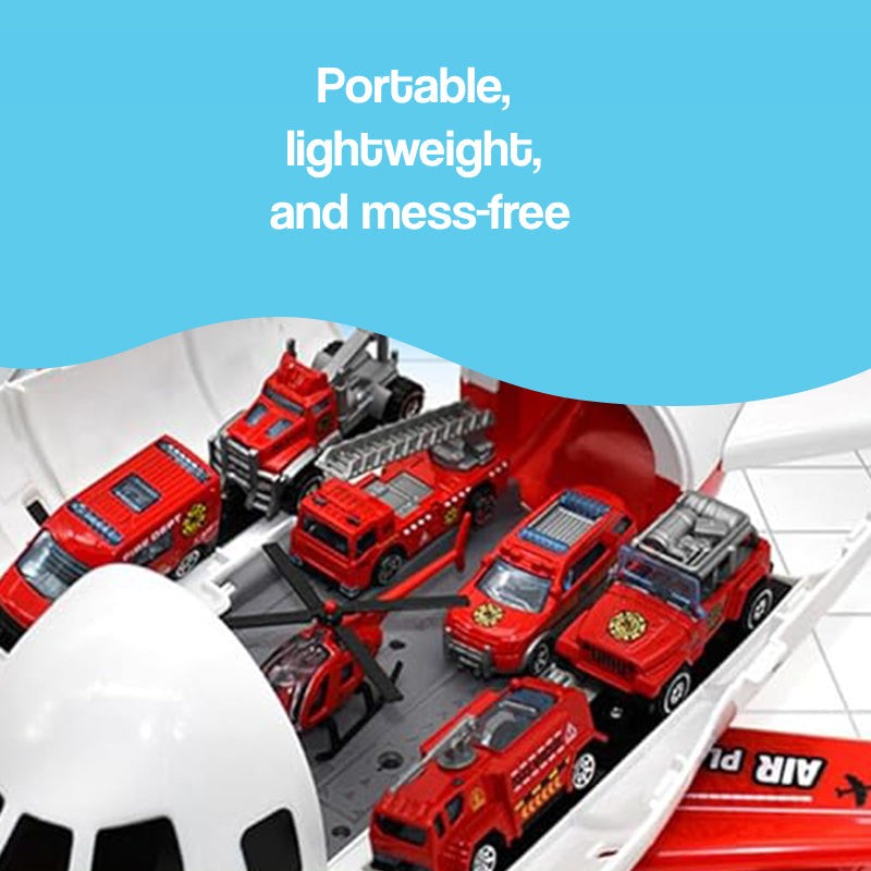 ๐ŸŽฏ Load & LaunchOpen the fuselage, load the rescue vehicles inside. Press the button and watch them shoot down the ramp into action!
